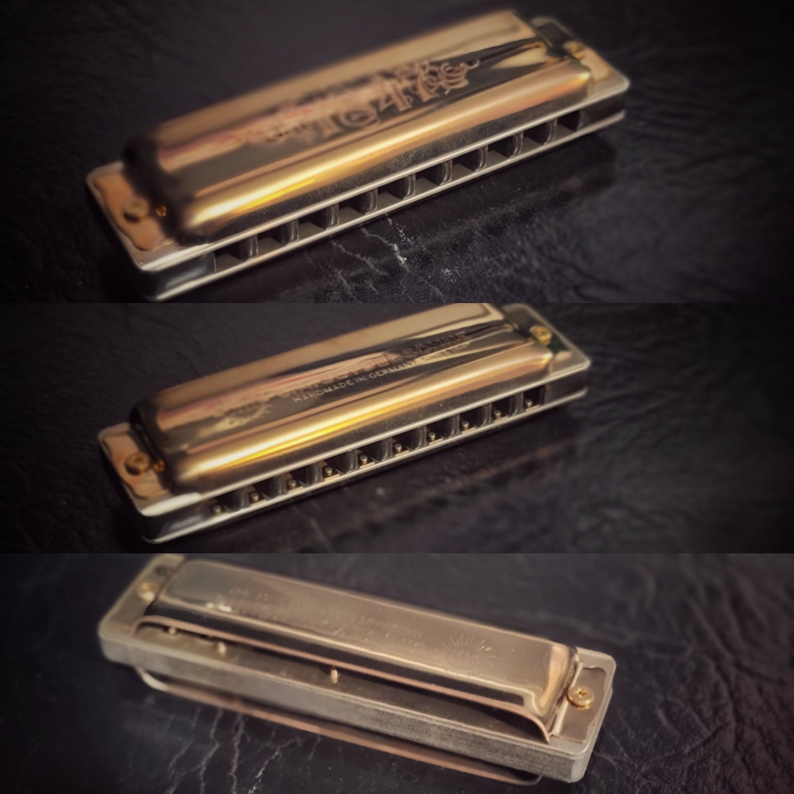 The 1847 "Raven" is a Canadian-assembled variant of the classic German harmonica. These harmonicas feature a Canadian-made Andrew Zajac custom Dark Comb™, made from an earth friendly wood-like material that will not swell or react to moisture. The cover plates are a set of stainless steel 1847 covers with a custom antiqued finish produced at Woozle Harmonicas. The German Silver 1847 reed plates and fasteners have been carefully antiqued as well, to ensure a matching and aesthetically pleasing finish, while ensuring that the reeds retain their exceptional polished stainless steel finish, tone, and durability.