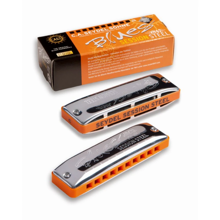 The SESSION STEEL is the upgrade to Seydel's successful SESSION model is presented with a bold new look and superior technical reliability, excellent playability and a fantastic sound. A blues harmonica with corrosion-free stainless steel reeds, ergonomic covers and plastic comb. Many special tunings available.